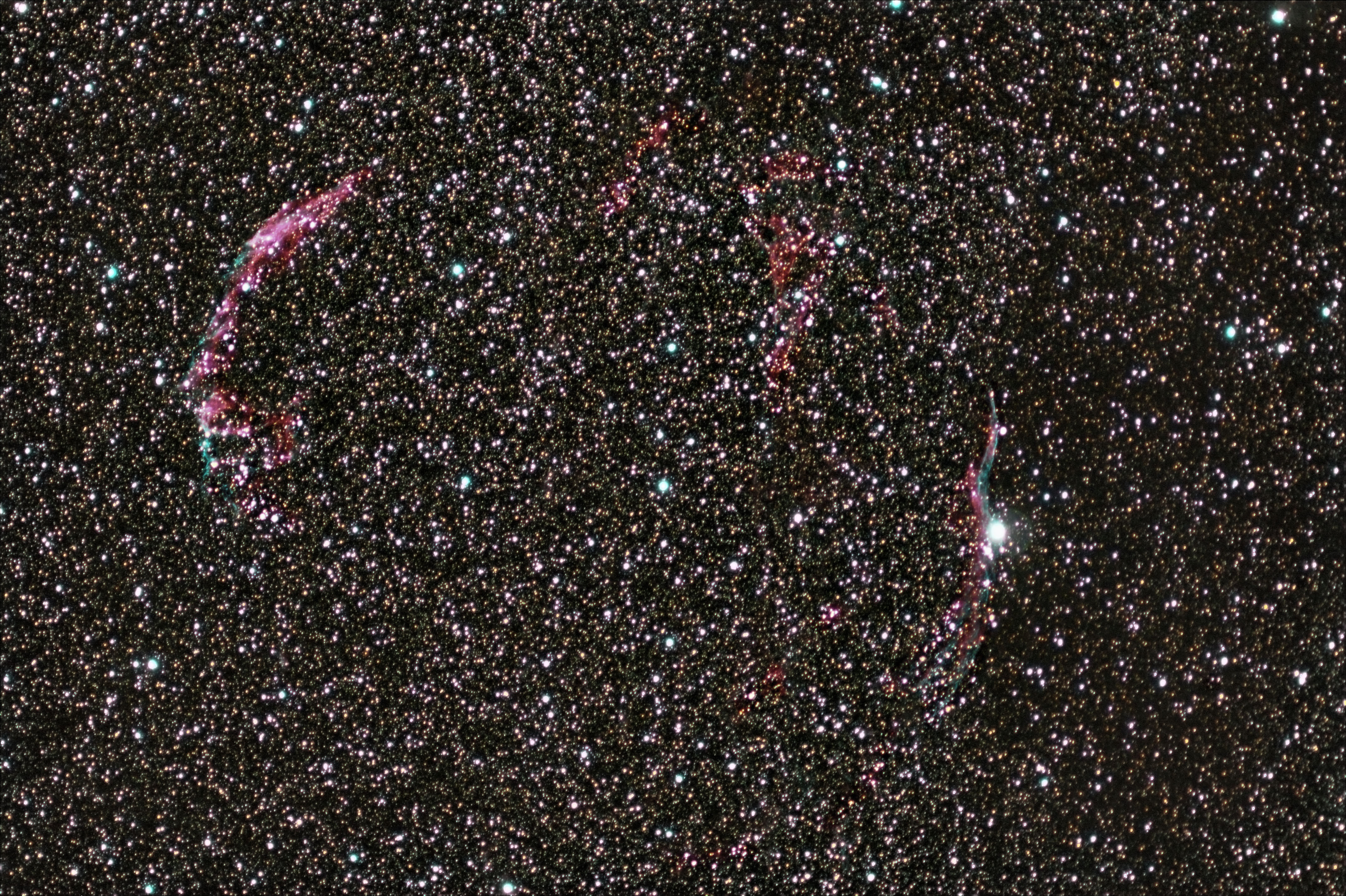 Die Bearbeitung gestaltete sich recht schwierig, da der Nebel schnell im Sternenmeer untergeht. Vor allem, wenn die Sterne durch ihre Farbsäume noch stärker hervortreten.